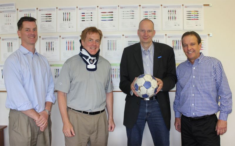 Dokumental, a German ink supplier and a world market leader in writing ink development and production, made a return visit to Hub Pen Company, Braintree, Mass.