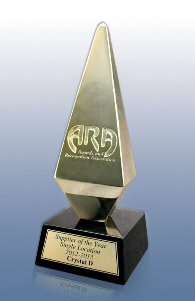 Crystal D, a leading supplier of corporate awards and plaques from St. Paul, Minn., received the Single Location Supplier of the Year Award at the 2013 ARA International Awards Gala, sponsored by the Awards and Recognition Association (ARA).